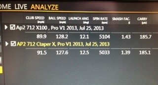 I had a player test X100 and CtaperX for comparison (used ProV1 and 5 shots per club)