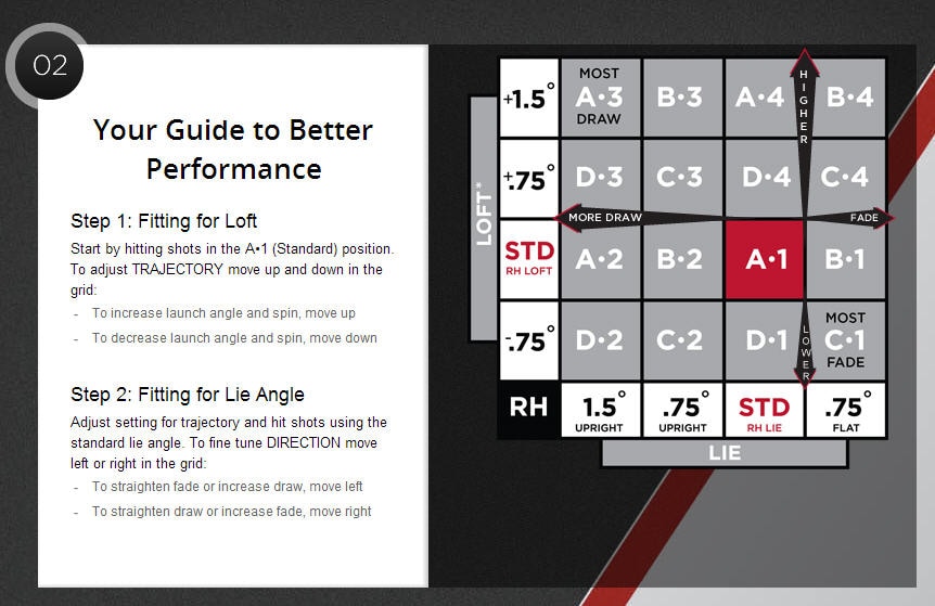 Hi David, The flattest setting is B1 at standard loft and that moves it .75 flat.