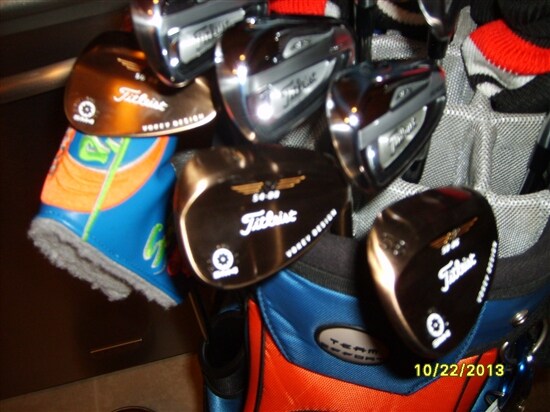 Well today my golf pro at my country club called me to come and pick up my irons and wedges. I was fitted on the 11th of Nov, so less than 2 weeks to show up. I already purchased the new 913D2 driver and 913F fairway woods both 3 and 5, and the 913H 21* hybrid. I also have a 2013 California Monterey. I was all about TM R1 and Rocketbladez. But my Pro at the club I belong to is relatively a new hire from Nebraska and he is a Titleist Rep and certified fitter. So he came up with having 5 volunteers to become a Team Titleist rep for the club. So far I am the only one that has volunteered. I will receive my new Titleist cart bag stitched with my club name and logo and my nickname this Friday, then I will be fully equipped all Titleist. The driver is phenomenal and so is the fairway and hybrid. I can not wait until tomorrow to use the irons for the first time. I am a 12 hdcp and I went with the 714 AP2's and Vokey SM4 oil can wedges, 50/54/58. The Pro ordered the irons with DG SL S300 shafts with 2* upright. The woods all have the Diamana S62 and S72 Reg flex shafts. I am a disabled vet from the Iraq War and have serious neck and back injuries. I was before I got injured using all stiff shafts in my tms, but with my injuries I just could not use the stiff flex any longer. I was surprised that my Pro fitted me with stiff iron shafts vs my reg flex irons. But he expresses that it is necessary to use stiff flex due to my swing tempo. But my woods are to stay reg flex as I have a much slower and controled tempo with the woods. I have also switched the Pro V1x ball, that in itself was a smart move and experience vs my previous TM TP5 ball.