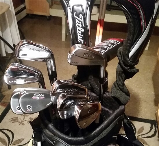 All new clubs look nice. I've had these out on the course a couple of times up here just north of Boston. 716 AP1 5 - W2, Vokey SM5 58.07, 915D2, 915F (15* and 21*). I added an 816 H1 (23*) to the mix after this picture was taken.