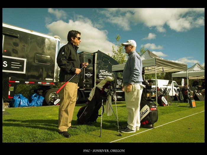 Our Oceanside fitters have flown up and our 40' FittingWorks Tour Van has crossed the Rocky Mountains to work with our Titleist PGA staff pros that have qualified for the 46th PGA PNC at Sunriver, Oregon. It will be held on June 23rd through the 26th at Crosswater Club and the Meadows Golf Course. This tournament is a chance for our PGA club pros to compete against the rest of their peers with the top 20 finishers earning a berth at the PGA Championhip. The Team is setting up on the range and I have