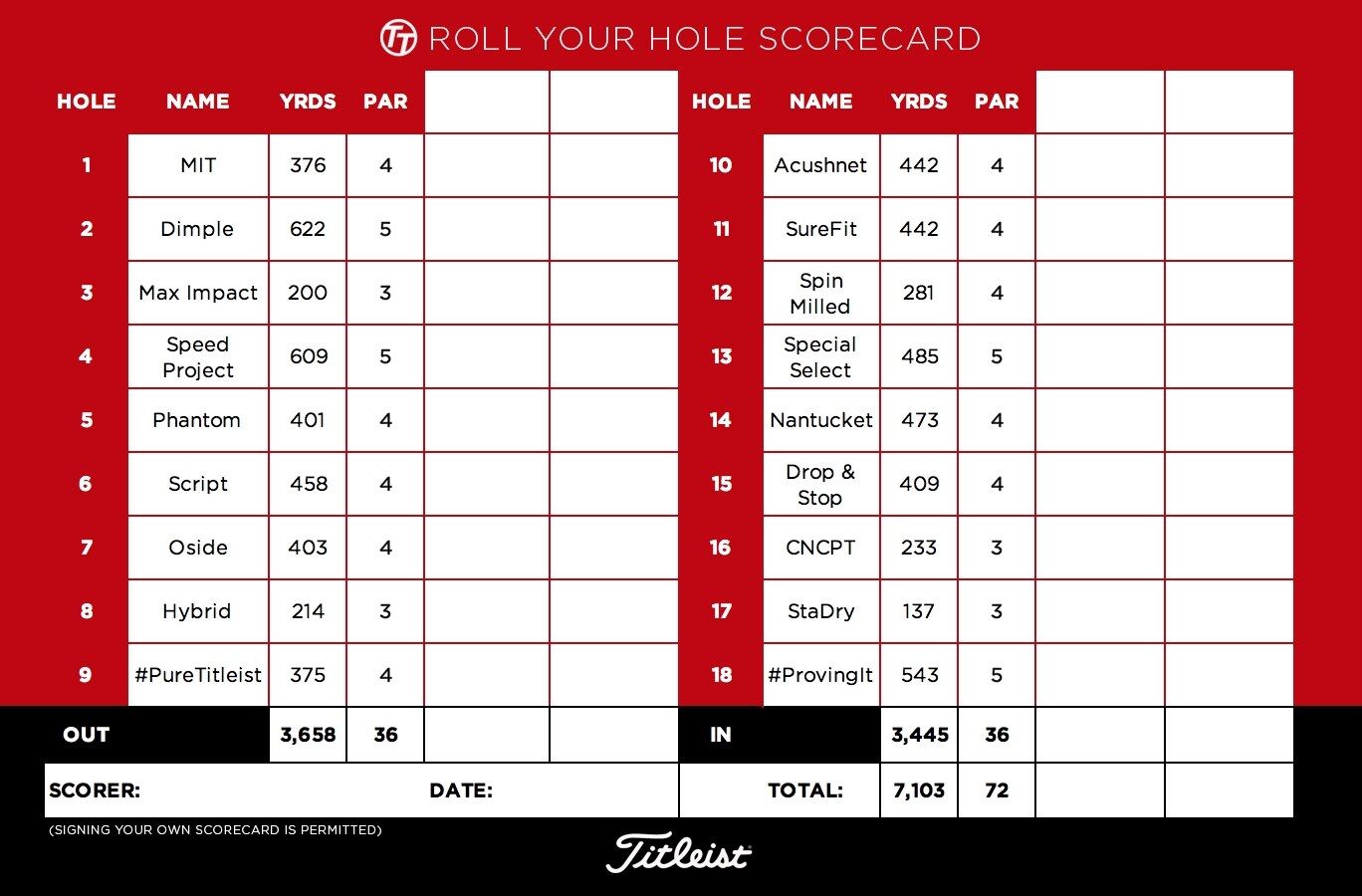 The game is simple: just grab a single die, roll it, and record your score on the Roll Your Hole Scorecard. Tally up the front, back, and total and upload an image of your scorecard in a response below.